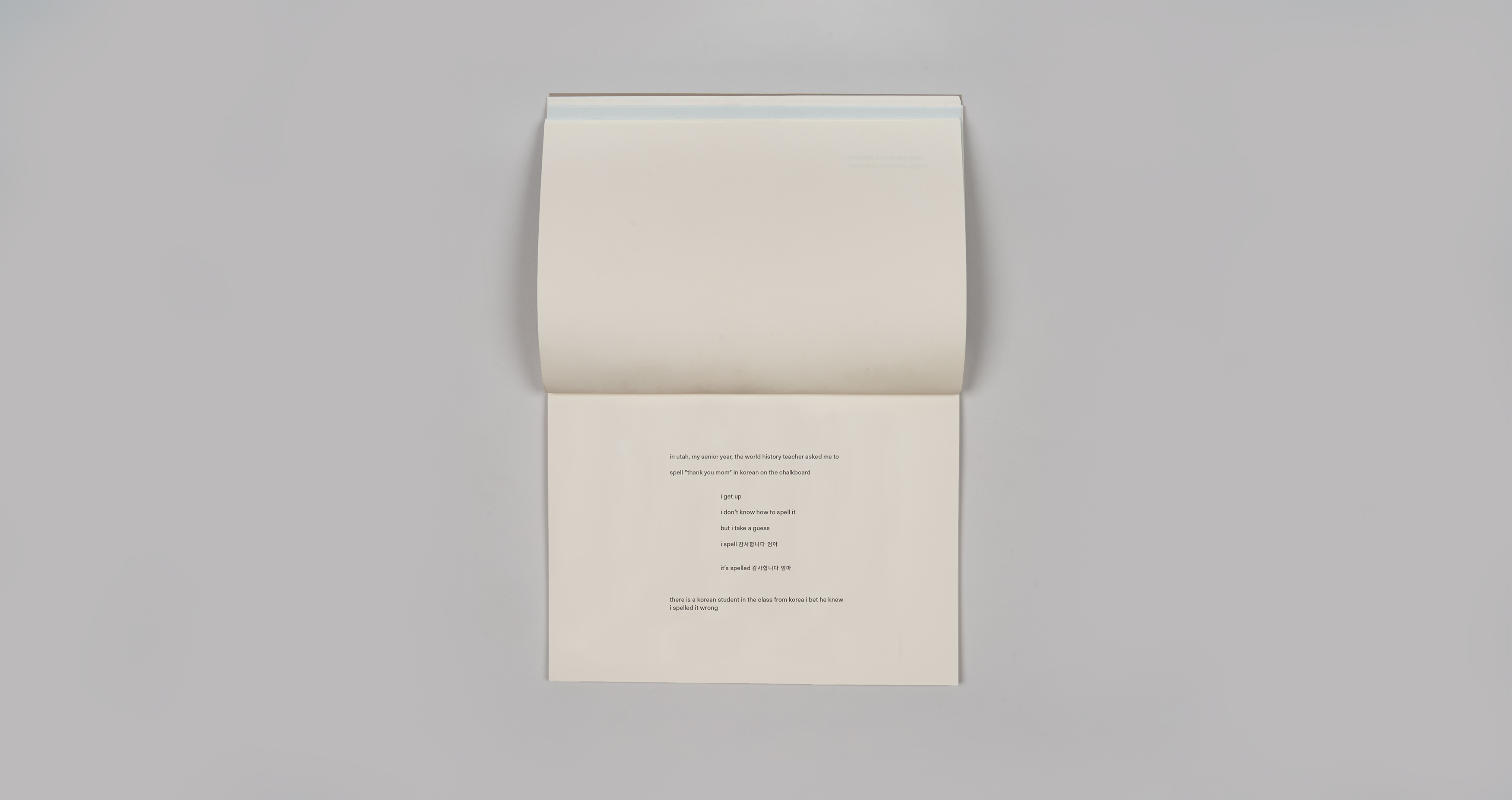 calling/부름 by Gi (Ginny) Huo draws upon personal remembrances, family archives, geopolitical history, celestial observations, and religious teachings to navigate the relationship between lines— between English and Korean; translation and interpretation; “north” and “south”; heaven and earth; past, present, and future.